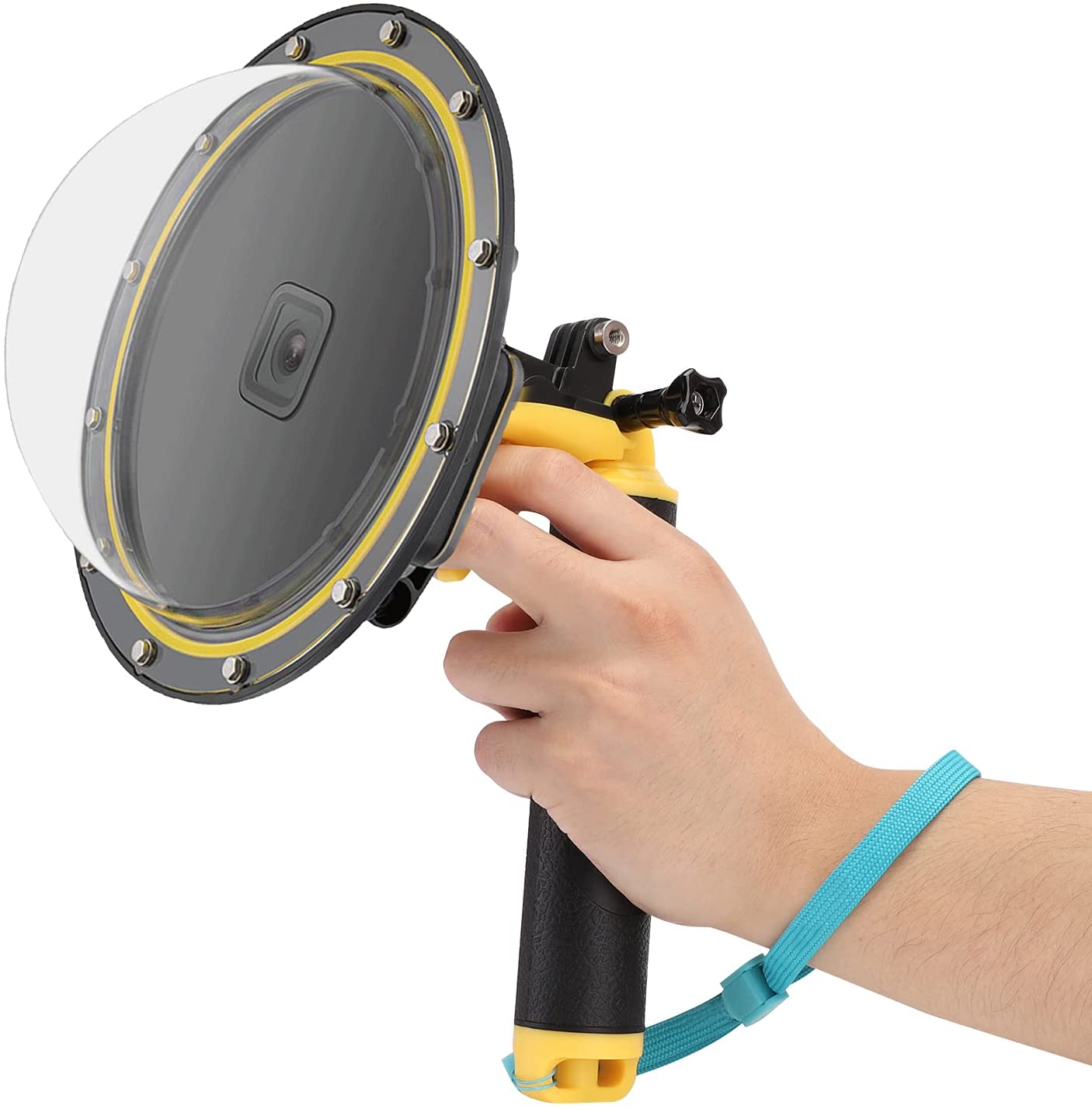 | 316 boutons en acier inoxydable : matériaux en acier inoxydable de qualité marine, processus de polissage de l’objectif, tête de bouton agrandie, protection intime de l’appareil photo. | Le côté de la base a 12 vis. Vous pouvez faire démonter entièrement le dôme pour le nettoyage et l’entretien. La nouvelle version de la poignée flottante portable est recouverte de caoutchouc et vous procure une sensation de douceur au toucher. | Le boîtier étanche verrouille votre caméra GoPro en toute sécurité, la gardant au sec et protégée, et permet à GoPro de plonger à 30 mètres de profondeur sans aucune fuite. |